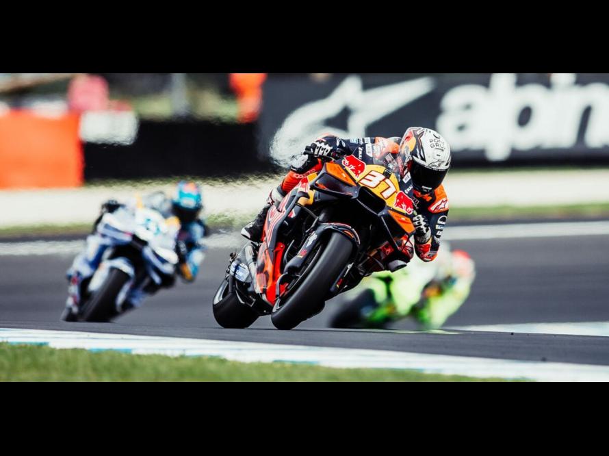 Les 27 tours de MotoGP ont débuté sous un ciel nuageux, frais et venteux, sur le site vénéré de l'État de Victoria, avec Acosta en 5e position sur la grille, Espargaro en 8e, Binder en 16e et Bastianini en 20e. Tous les quatre étaient conscients des leçons apprises en matière de réglages grâce à leurs efforts lors du sprint de 13 tours disputé samedi, où Acosta a obtenu le meilleur résultat avec son troisième podium de l'année.