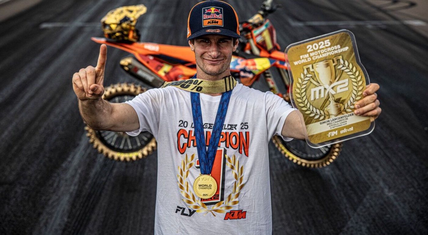 Simon Laengenfelder a remporté le championnat du monde de motocross FIM MX2 2025 après avoir terminé deuxième au Grand Prix d'Australie, dernière manche de la saison, qui s'est déroulée dans un Hidden Valley Motorsports Complex très fréquenté, sous une chaleur torride et sous l'emprise d'une tempête. Le jeune homme de 21 ans est devenu le deuxième Allemand à décrocher le titre de champion MX2 pour Red Bull KTM Factory Racing et le premier de son pays dans une compétition de motocross FIM depuis 2011. Lucas Coenen a dominé la division MXGP à Darwin et le jeune homme de 18 ans termine sa première année exceptionnelle et record dans la catégorie reine en tant que vice-champion.
